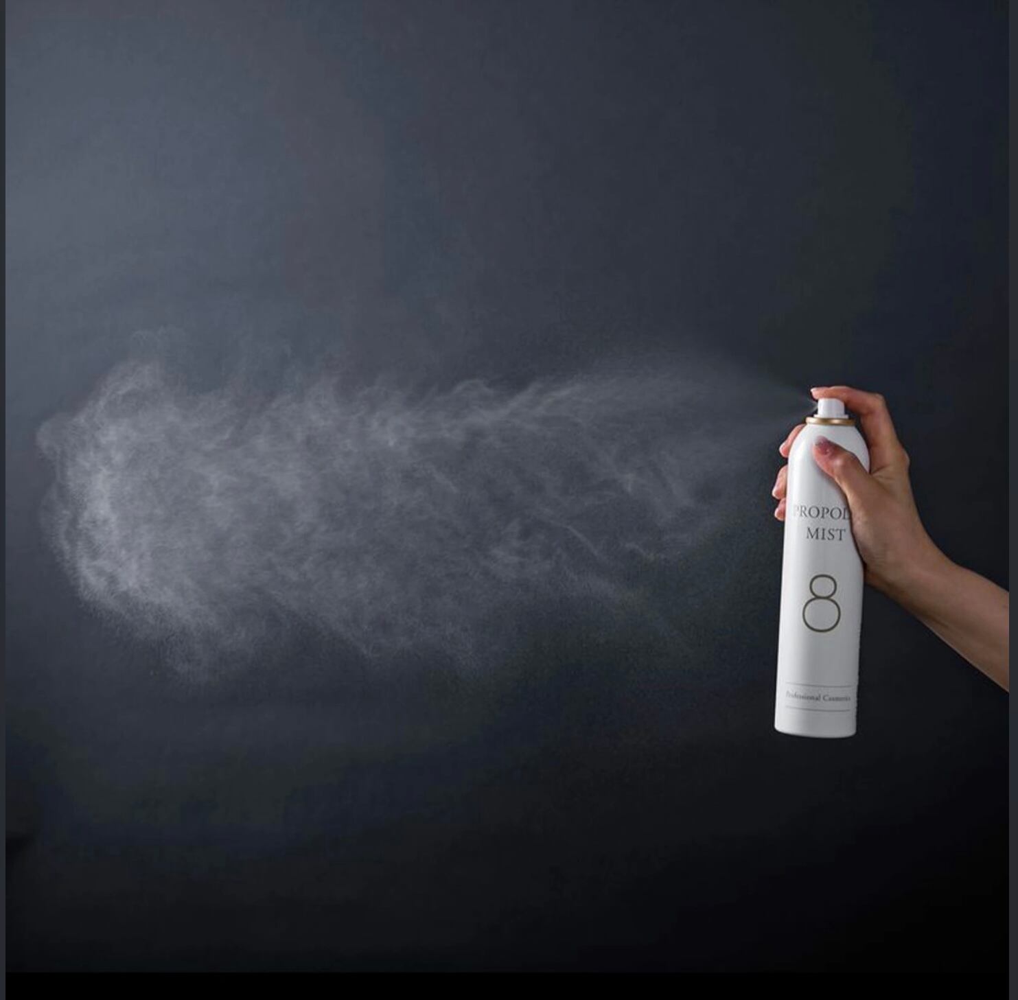 顔から20cmほど離し、円を描くようにスプレーし、手の平でやさしくなじませます。